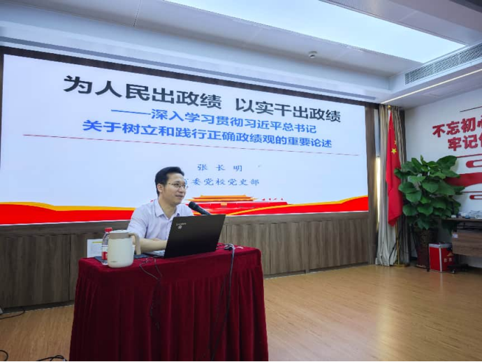 张长明副教授紧扣习近平总书记关于树立和践行正确政绩观的重要论述,围绕“政绩观学习教育的重要意义”“正确政绩观的丰富内涵”“怎样创造政绩?”三个方面,进行系统阐释和深入讲解。授课逻辑清晰、内容翔实,既有理论高度又有实践深度,为全体人员进一步端正发展理念、校准工作方向提供了有力指导。